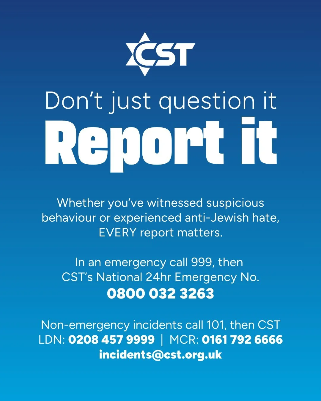 CST defines an antisemitic incident as any malicious act aimed at Jewish people, organisations or property, where there is evidence that the act has antisemitic motivation or content, or that the victim was targeted because they were (or were believed to be) Jewish.